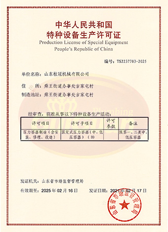 山东桂冠机械有限公司成立于2008年,注册资金1600万元,现有员工200多人,中高级技术管理人员45人,占地面积27000多平方米,生产车间面积12000多平方米。公司具备压力容器产品的设计、制造(证书编号为:TS2237703-2025)、压力管道安装(证书编号为TS3837607-2025)全套压力容器资质;通过国家ISO9001质量管理体系认证、美国ASME认证、欧盟CE认证;拥有建筑安装机电工程专业承包叁级资质、建筑工程施工总承包叁级资质及对外贸易经营出口权…